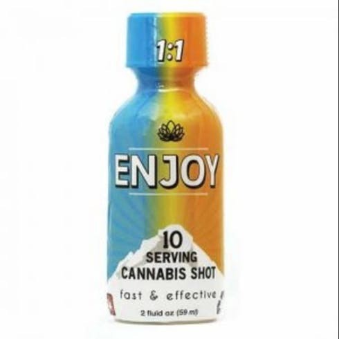 Over the course of my experiences with Enjoy’s 1:1 THC:CBD Shot, I estimate I had at most two servings with each “sip” because my sips felt more substantial than “just a taste” but were definitely less than a mouthful. The boldest mood-altering effects lasted for around three hours, but the most value I found was in the way the high faded; each time it left a vaporous contentment that lasted throughout the rest of the day. And that’s not something I can say about your typical 5-hour Energy drink.