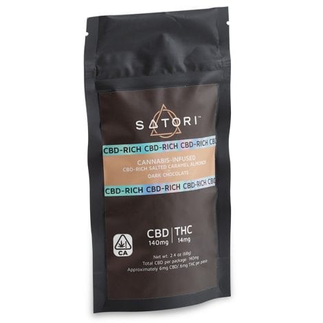 In a market full of edibles designed for maximum stoniness, Satori’s CBD-Rich Salted Caramel Almonds are a blissful reprieve. And yes, this Satori confection provides some semblance of stoniness, but it’s the complex cognitive agility that this sweet bite provided that has me so excited. There are an incalculable number of edibles on the shelves of our local dispensaries that will get us stoned to the bone, but Satori’s CBD-rich almonds are for a smaller percentage of users, users who require something more mature than a blissful psychoactive experience. I mean, being stoned to the bone is super fun and all, but have those products ever helped you dominate a creative project with laser focus, crystalized clarity, and almost supernatural intuition and responsiveness? Because, honey, the entourage effect is real and Satori is out here improving my creative function and cognitive clarity three chocolate-covered almonds at a time.